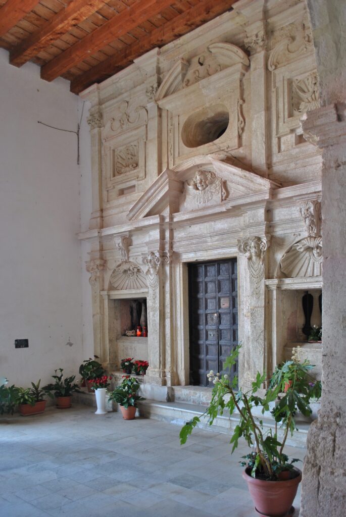 Profilo sintetico dell’artista Pietro Barbalonga | Pietro Barbalonga fu uno scalpellino e scultore di origine messinese, attivo tra la fine del Cinquecento e i primi decenni del Seicento. Giunto per la prima volta ad Aiello nel 1596, chiamatovi da Alfonso Cybo insieme ai soci Giovan Battista Cioli e Andrea Matini, realizza la Cappella nella chiesa di Santa Maria delle Grazie. Si stabilisce definitivamente nel feudo calabrese, dove nel 1609 sposa Isabella Giannuzzi e diviene figura di primo piano nella vita artistica locale. Nel corso degli anni riceve numerose commissioni per cappelle, sepolcri e opere architettoniche, tra cui i rilievi scultorei di palazzo Cybo Malaspina e la progettazione del convento di Santa Chiara ad Aiello. Non si limita a svolgere un’attività manuale di tipo scultoreo, ma riveste un vero e proprio ruolo da architetto, progettista e direttore di cantiere. Fonda inoltre una vera e propria bottega artigianale, formando numerosi apprendisti nell’arte dello scalpellino e del disegno. Il suo stile si colloca nella transizione tra Rinascimento e Barocco, con influenze della scuola messinese e romana. Muore ad Aiello il 23 aprile 1626, e il suo corpo fu tumulato nella chiesa Matrice, a testimonianza dell’importante ruolo sociale raggiunto dall’artista nella comunità d’adozione.