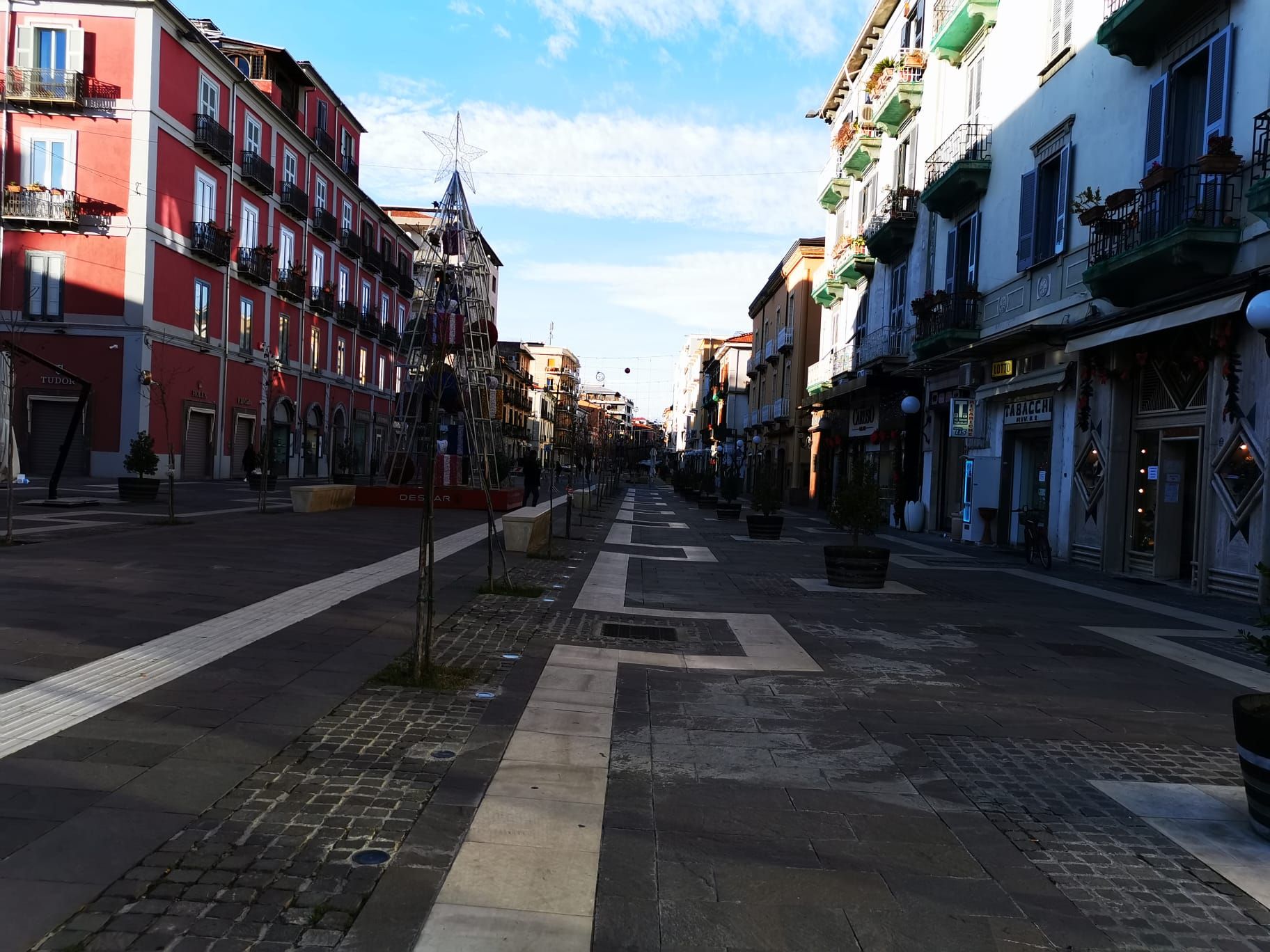 Zone Rossa. ll Corso Mazzini è deserto alla vigilia del Santo Natale, sotto il vigile presidio dell'Esercito Italiano, Polizia di Stato e Carabinieri