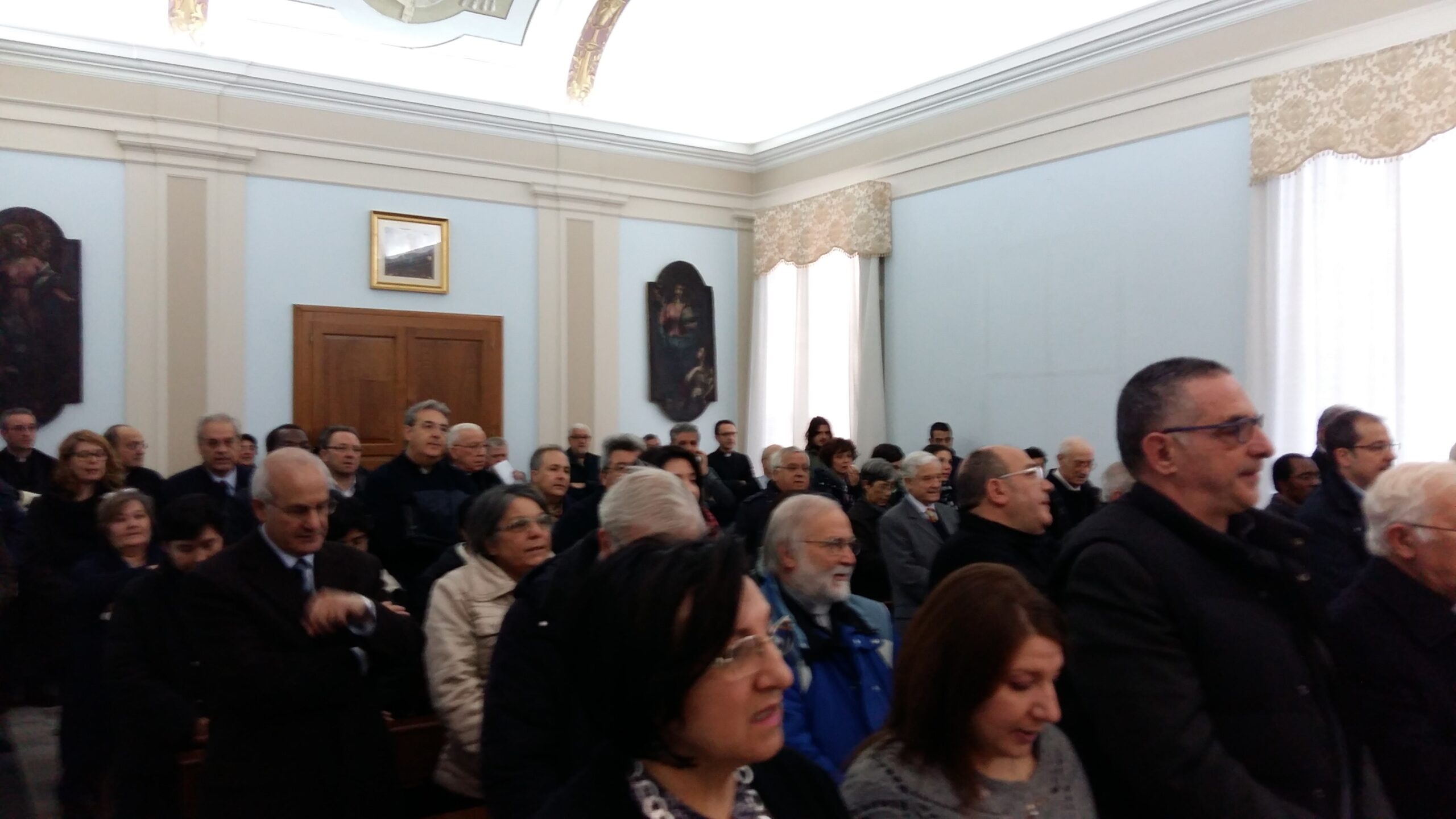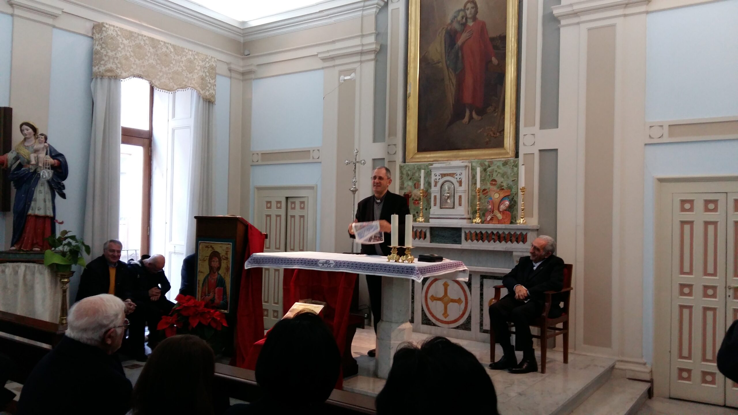Poi alle 12, come ogni giorno la recita della preghiera dell’Angelus con tutti gli impiegati, i responsabili degli uffici e i volontari che prestano il loro servizio in curia. L’occasione è stata propizia per un affettuoso scambio di auguri ed un breve discorso del vicario generale, monsignor Salvatore Bartucci, che ha voluto ringraziare monsignor Nolè per questi primi sei mesi di servizio nella nostra diocesi e rinnovare l’impegno e la collaborazione da parte di tutti.