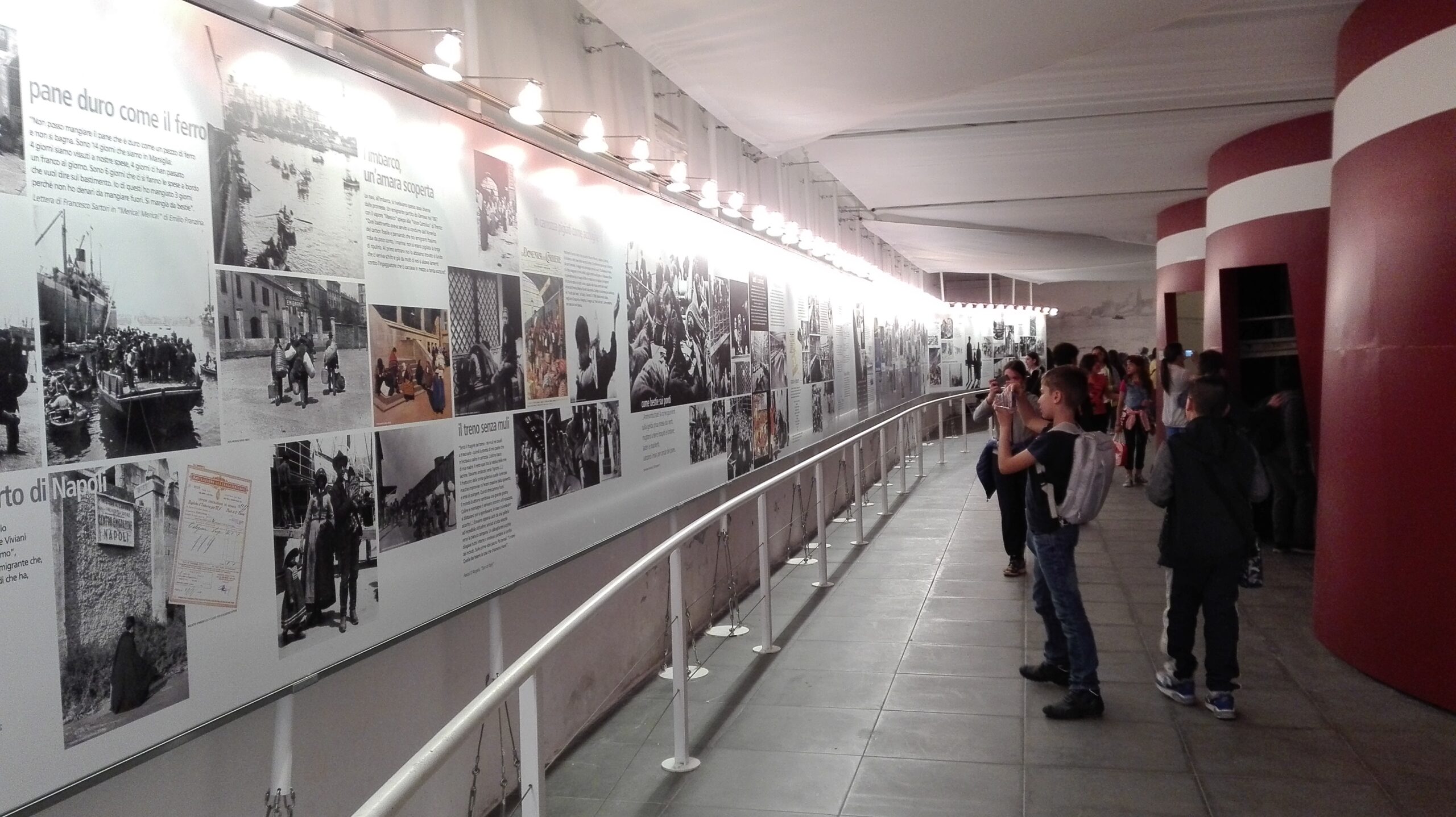 Quindi un percorso che offre ai visitatori uno spaccato della storia dell’emigrazione italiana a partire dalla ricostruzione di un ponte di un bastimento, simbolo stesso del grande esodo. In questo spazio sono esposti numerosi pannelli con fotografie, illustrazioni e copertine di vecchie riviste, poesie, statistiche e testimonianze letterarie che raccontano una storia lunga un secolo. Nato con l’obiettivo di far cogliere a tutti, soprattutto alle centinaia di studenti che ogni anno visitano il museo, un fenomeno che ha accompagnato la nostra storia ed ora ci vede nuovamente protagonisti nell’accoglienza, il museo ospita al suo interno tre fumaioli: il primo contiene una raccolta di video dell’Istituto Luce,; il secondo riproduce una cuccetta dell’epoca; Il terzo una collezione di centinaia di canzoni, colonna sonora del nostro esodo. Ancora le due maniche a vento ospitano un approfondimento su una famiglia di emigrati calabresi e la banca dati della Fondazione Agnelli con i nomi degli italiani sbarcati a New York, a Santos e a La Plata.