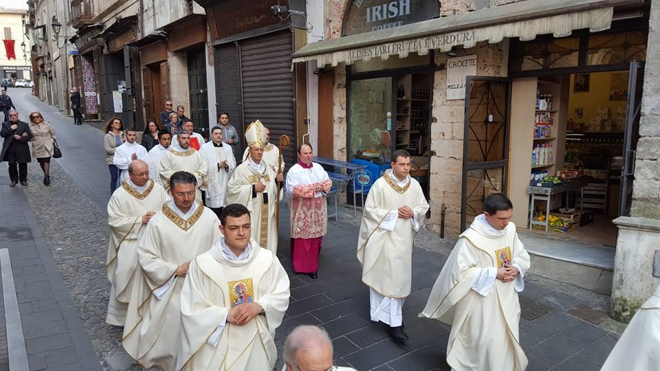 Una celebrazione anzitutto è sempre di ringraziamento. È quella del Crisma, che monsignor Francesco Nolè, Arcivescovo di Cosenza – Bisignano, ha presieduto questo pomeriggio. “Con gioia e fraterna letizia vi saluto e idealmente vi abbraccio uno per uno e affettuosamente tutti” – il primo messaggio del Pastore cosentino anche rivolgendosi a monsignor Salvatore Nunnari, che ancora una volta ha concelebrato il sacro rito dopo aver confessato alcuni fedeli. “Un giorno solenne”, un’occasione per rendere lode al Signore buono per il dono del sacerdozio, a partire da quello battesimale.   “La celebrazione della Messa Crisma le ha in sé molteplici significati che rendono questo momento sempre più emblematico del fatto che siamo Chiesa, Popolo di Dio e sacerdotale in forza del battesimo, un popolo che vuole vivere la comunione al suo interno ed essere missionario e testimone del Vangelo di Gesù nel mondo”. Il pensiero di mons. Nolè va proprio a “tutti noi battezzati che, unti con il sacro Crisma, partecipiamo al sacerdozio regale di Cristo”. Nella famiglia, ad esempio, laddove “essere sacerdoti re e profeti” signigica “vivere ogni attività nell’unico sacrificio di Cristo, santificando con il proprio lavoro e la testimonianza di fede anche le cose profane. Il lavoro la sofferenza la croce la gioia e l’amore non sono esclusivamente del sacerdozio ministeriale ma ingredienti di ogni persona del Popolo di Dio”. L’abbraccio del Vescovo va a tutti quei laici che “con la propria passione pastorale”, operano all’interno delle varie comunità. La carezza di monsignor Nolè ai sacerdoti, alla loro unità, al vincolo che li stringe al loro Pastore. “Se ci conosciamo di più ci amiamo di più”. “Se ci confidiamo di più”, l’auspicio di monsignor Nolè, che al termine della celebrazione ha consacrato gli Olii sacri del Crisma, dei catecumeni e degli Infermi. “Ci stimiamo e amiamo poco perché non ci confidiamo abbastanza”. L’altro pensiero ai sei seminaristi ammessi all’ordine sacro. La celebrazione della Messa crismale come momento propizio per “rendere evidente e condividere con voi la gioia del vescovo e di tutto il presbiterio nell’accogliente questi giovani candidati che, presi da voi, popolo di Dio, sono a voi affidati per il ministero e l’amministrazione dei sacramenti”
