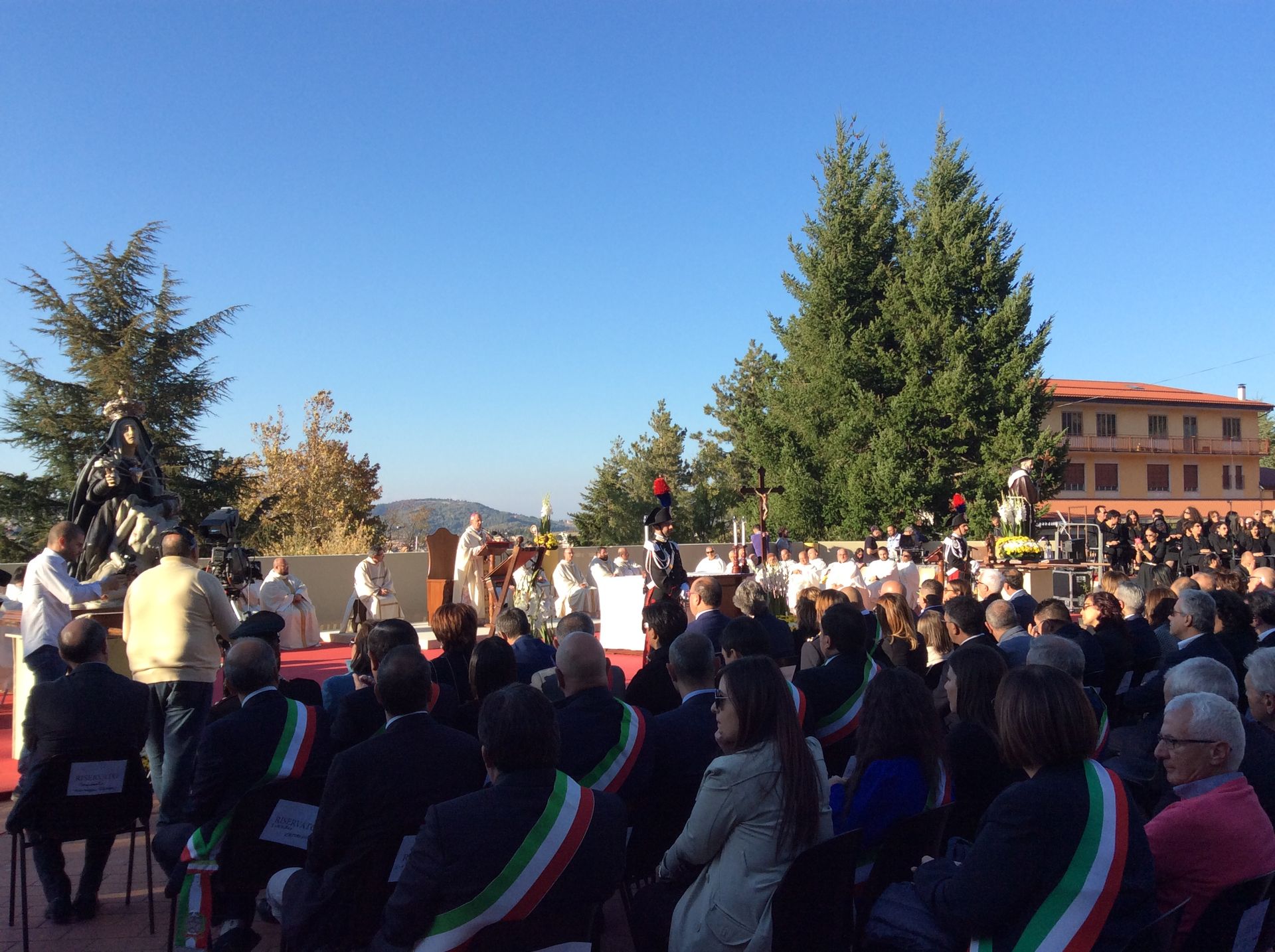 Una città vestita a festa per accogliere e festeggiare Sant’Angelo dopo la Canonizzazione della settimana scorsa in piazza San Pietro. Festoni, striscioni e immagini del famoso predicatore cappuccino riempiono le strade di tutta la cittadina che oggi ha ringraziato il Signore con una solenne messa nell’anfiteatro comunale alla quale hanno preso parte più di tremila fedeli, quaranta sacerdoti concelebranti e 150 volontari che hanno accolto e accompagnato i pellegrini provenienti da tutta la Calabria. A presiedere l’eucarestia, trasmessa in diretta tv e radio, Monsignor Francesco Nolè, arcivescovo di Cosenza-Bisignano, che ha sottolineato quanto sia ancora doveroso ringraziare il Signore per la gioia di questi Santi che impreziosiscono la terra di Calabria. “Ma chi sono i Santi? – ha proseguito Monsignor Nolè durante l’omelia – sono coloro che hanno amato sulla terra partecipando così della santità di Dio. Sono stati tanti i giornali che questa settimana hanno esaltato la figura di Sant’Angelo additandolo come modello da seguire. Ma noi non dobbiamo solo osservare, non dobbiamo solo essere spettatori, ma diventare loro imitatori”.