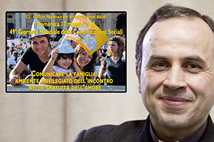Una famiglia sorridente, in primo piano; sullo sfondo, la basilica di San Pietro, quasi a ricordare l’appuntamento del Sinodo sulla famiglia che si svolgerà dal 4 al 25 ottobre 2015. È l’immagine scelta dalla Chiesa italiana per animare la 49ª Giornata mondiale delle comunicazioni sociali, che viene celebrata domenica 17 maggio sul tema “Comunicare la famiglia: ambiente privilegiato dell’incontro nella gratuità dell’amore” scelto da Papa Francesco, che lo illustra nel suo messaggio per questo appuntamento. Ne parliamo con monsignor Domenico Pompili, sottosegretario della Cei e direttore dell’Ufficio nazionale delle comunicazioni sociali. “Il cuore del messaggio è ‘un nuovo punto di vista’ sulla comunicazione e, reciprocamente, sulla famiglia, che facilita uno sguardo più concreto sui nuovi media che sembrano mettere a dura prova la coesione e il dialogo familiare. La scelta di Papa Francesco di lasciarsi ispirare dalla visita di Maria a Elisabetta (Lc 1, 39-56) si rivela un’interpretazione realistica e convincente per capire quel ‘miracolo’ che è ogni volta la comunicazione. Parlare di comunicazione a partire dalla gestazione di un bambino in grembo può sembrare poetico e poco scientifico. Invece, tornare a quel momento originario aiuta a entrare dentro il linguaggio del corpo che è fatto di ascolto e di contatto fisico. Il cuore del messaggio del Papa è proprio questo momento originario della comunicazione”.